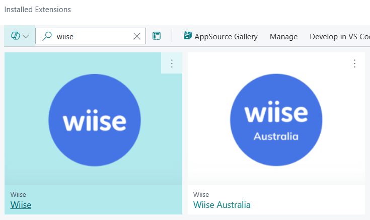 - Select the recently installed Wiise apps that you updated in Dynamics 365 Business Central admin center.