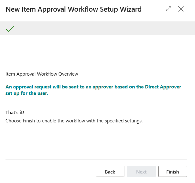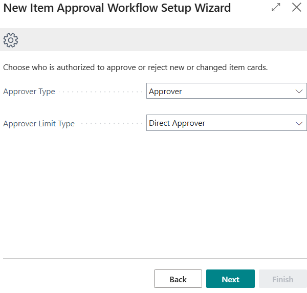- The New Item Approval Workflow Setup Wizard page displays.