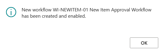 - A confirmation message displays that a new item approval workflow has been enabled.