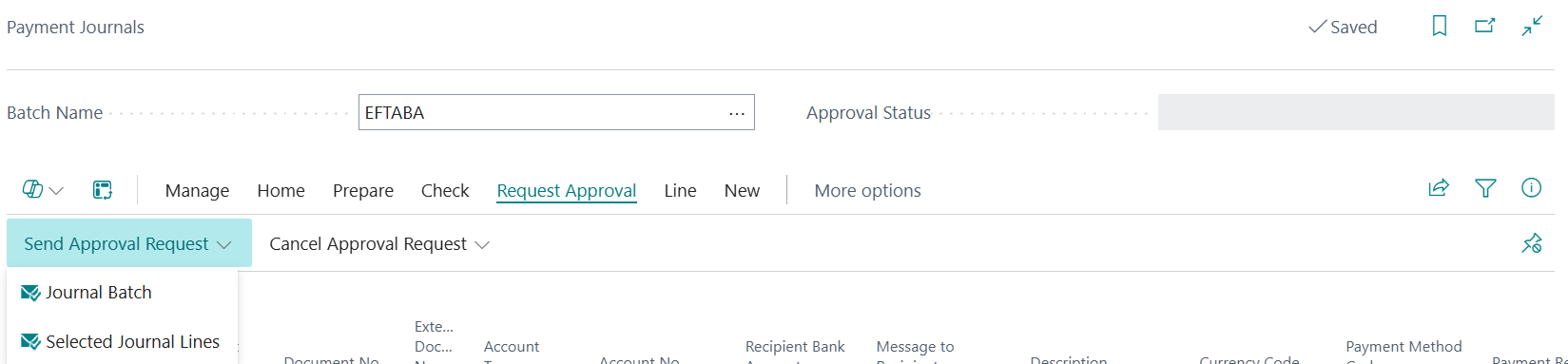 From the drop-down menu, you can select the Journal Batch or Selected Journal Lines to send for approval.
