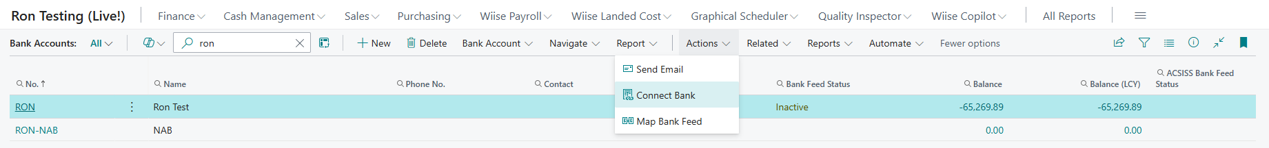 - Select Connect a bank account on your Wiise Bank Feeds panel.