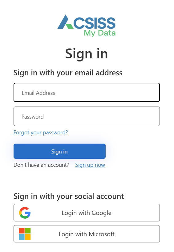 - You’ll be re-directed to sign in to the ACSISS My Data Sign in page.