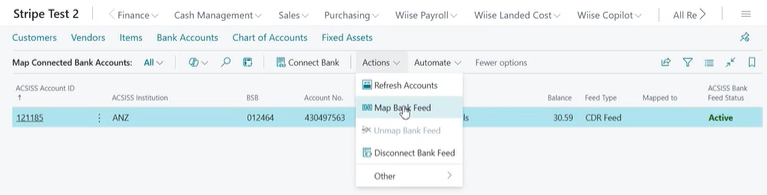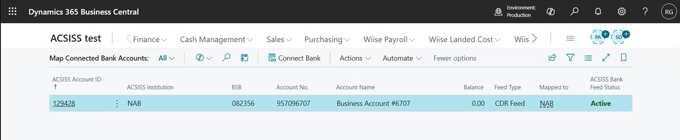 - You’ll be directed back to the Map Connected Bank Accounts page in Wiise where all connections made via ACSISS My Data appear with an Active status.