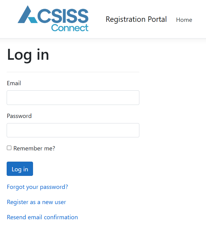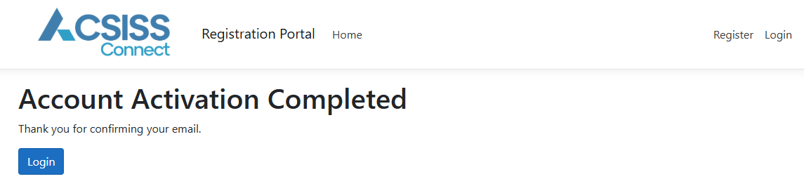 - Select Login to be redirected back to the ACSISS Connect Registration Portal.