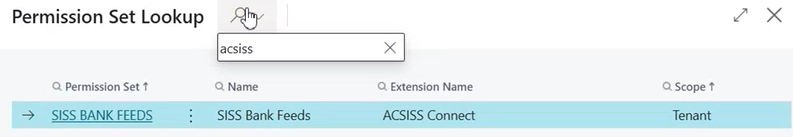 - Search for SISS Bank Feeds. Assign this permission set for the user.