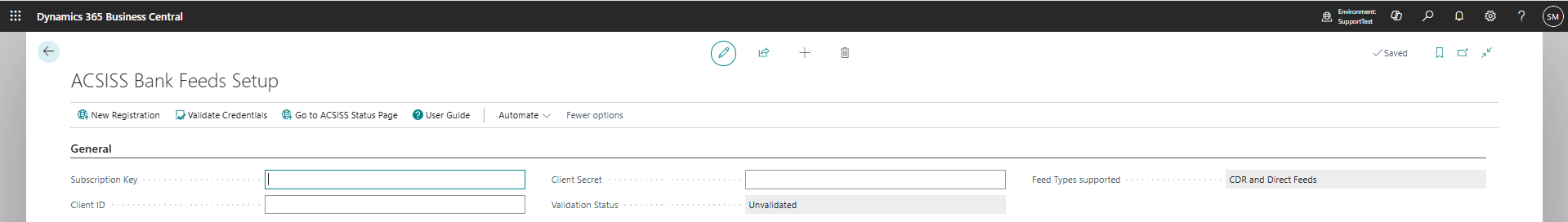 Note: You’ll need to set up 70949759 as the Object ID to Run your ACSISS bank feeds. - Fill in the following fields: