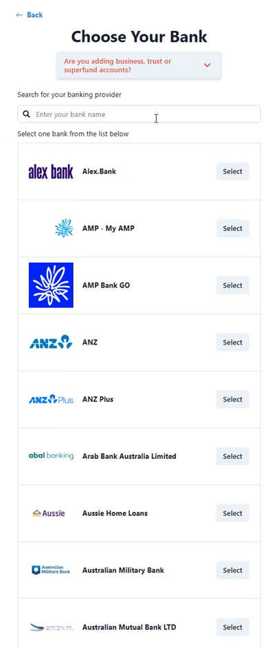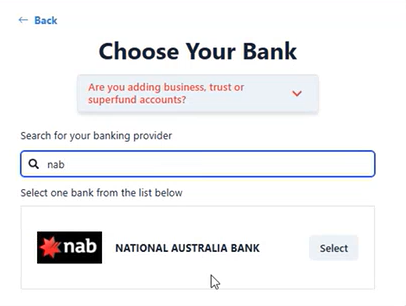 Note: You’ll need to confirm if you’re connecting to a personal bank account or something more complex such as business, trust, or superfund.