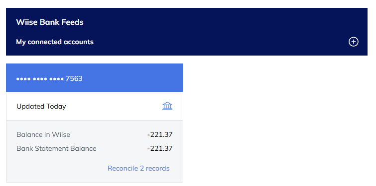 Note: On your Wiise Bank Feeds panel you can view your connected bank accounts and find out how many transactions need to be reconciled.