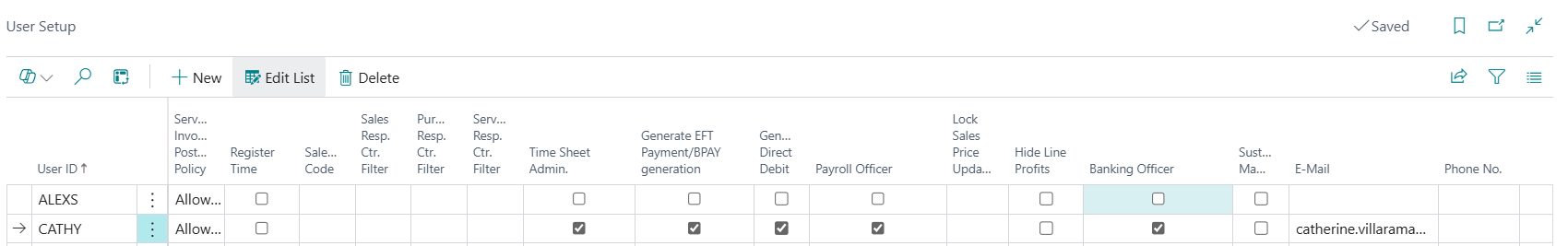 Note: Your system administrator or a user with SUPER access can allocate these permissions for you. The Banking Officer permission can be updated in User Setup.
