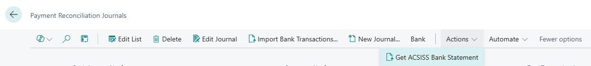 - Select More Options. Then, select Actions. From the drop-down select Get ACSISS Bank Statement.