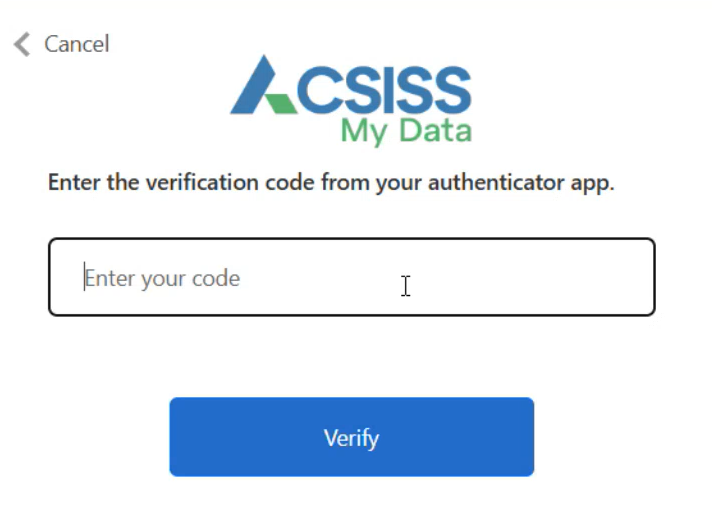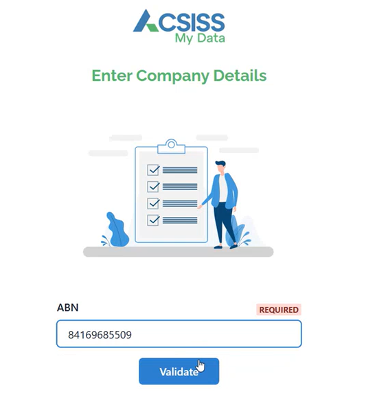 Note: When you sign in to ACSISS My Data account, you’ll be requested to enter the verification code from your authenticator app. This adds an extra security layer when you login to the ACSISS My Data account. - Once you sign in to account, the Enter Company Details page displays.
