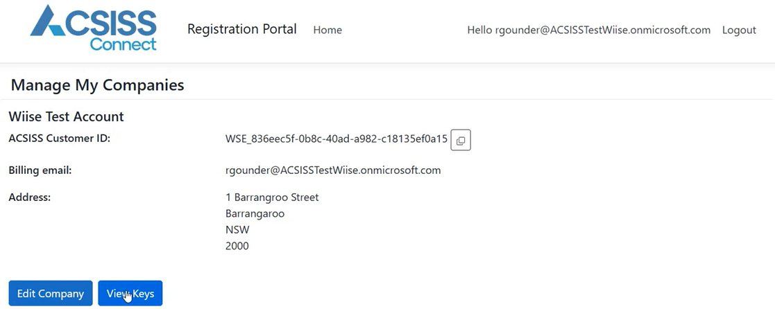 - Set up an account with ACSISS linked to Wiise (to avoid billing charges) via the ACSISS Connect Registration Portal.