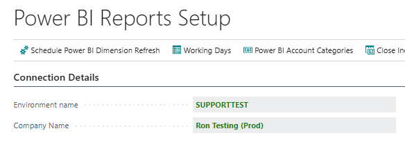 Note: You can find the Environment Name and Company Name on the Power BI Reports Setup page in Wiise. Copy the exact spelling and paste this into the Connect to Wiise Dashboards set up page to prevent errors.