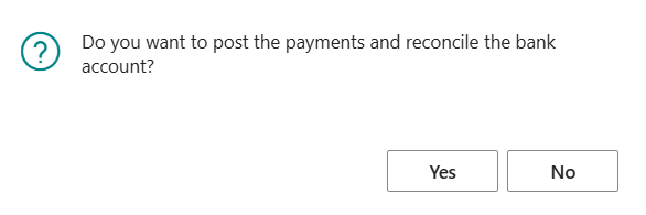 - A message displays to confirm if you want to post the payments and reconcile the bank account?