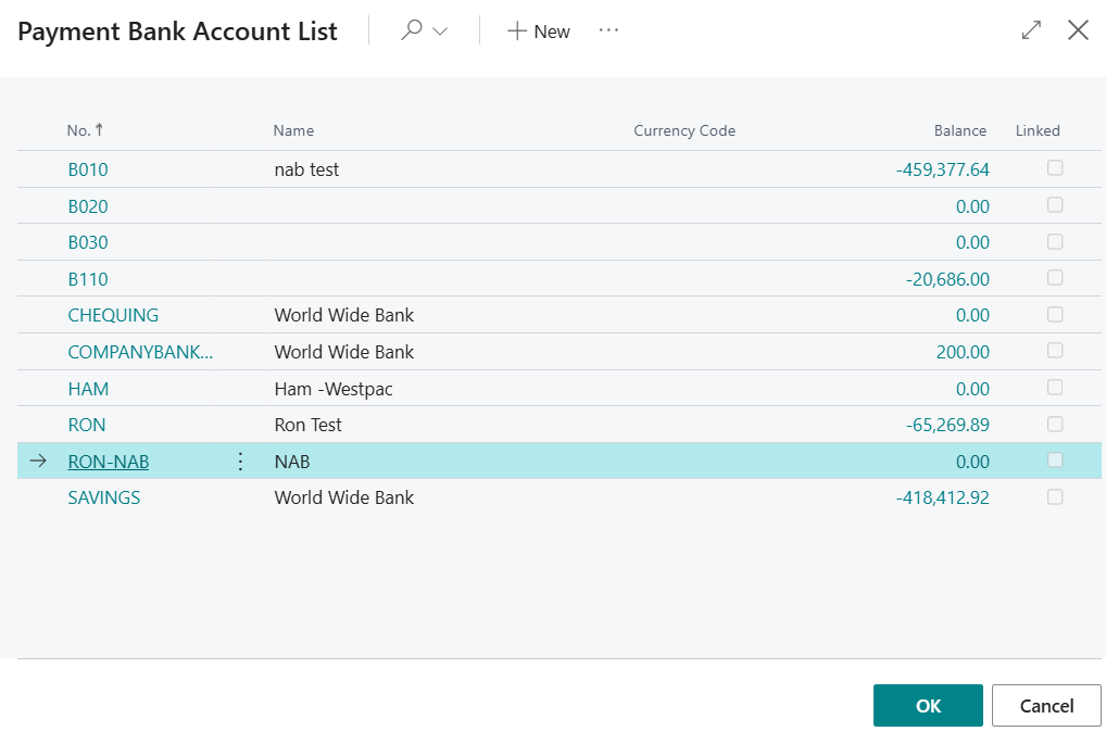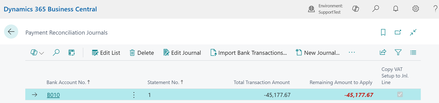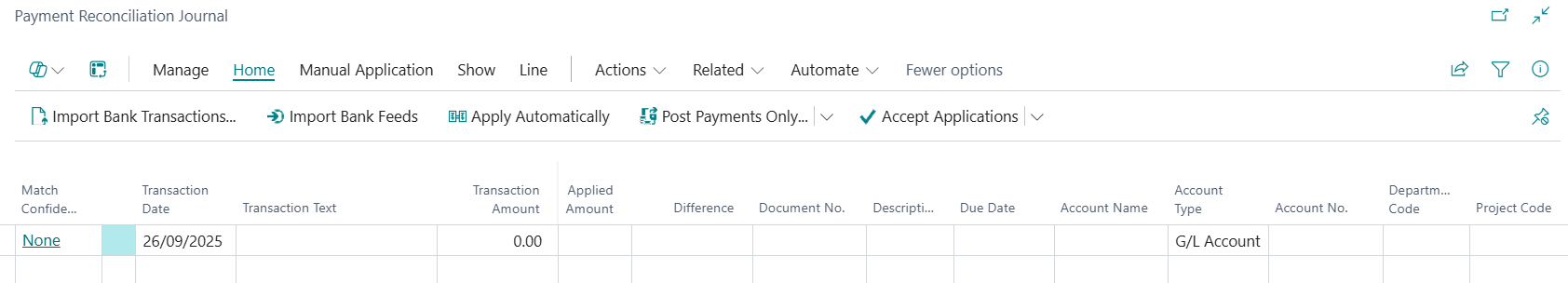 - The imported bank feed transactions populate in the payment reconciliation journal with the Transaction Date, Transaction Text and Transaction Amount filled in.