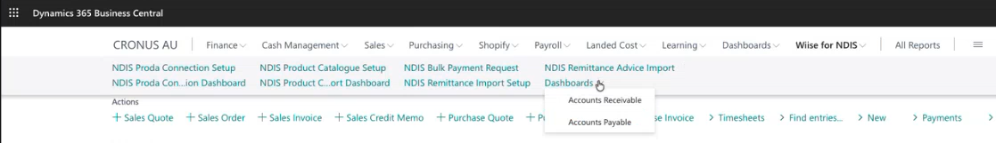 Note: You can view the Accounts Payable and Accounts Receivables dashboards for NDIS.