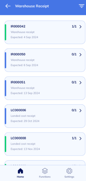 - Then, select the Warehouse receipt or Landed cost receipt, you wish to work on in OnTime.