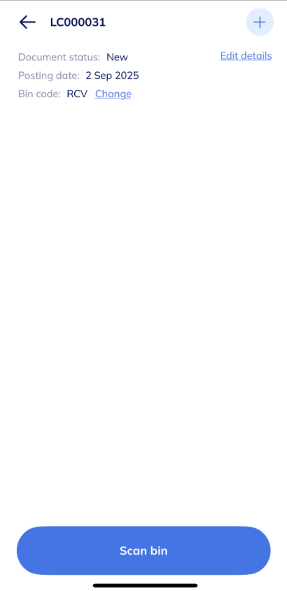 - The Scan bin page displays. Select Scan bin.