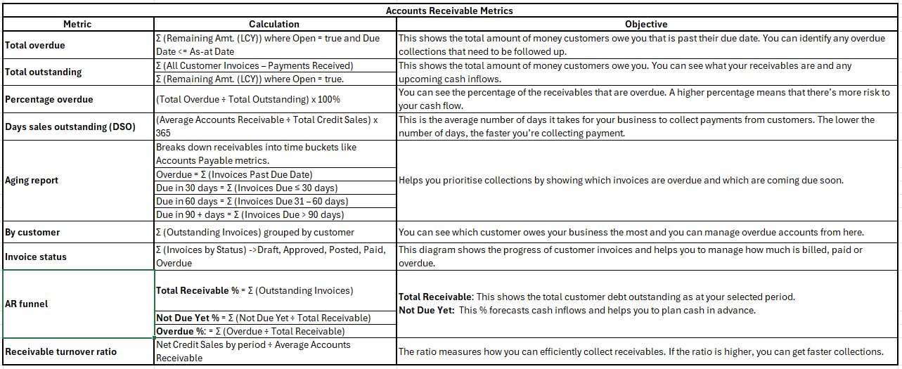 2. Here’s how to read and understand the tiles on the Accounts Receivable report metrics: