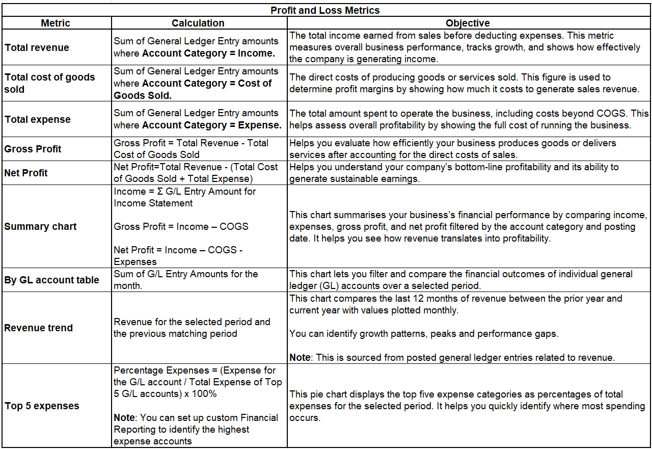 - Here’s how to read and understand the tiles on the Profit and Loss report metrics: