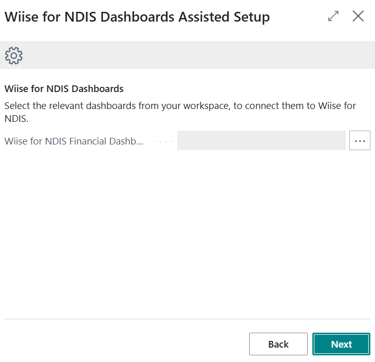 - On your first time setting this up in Wiise, the Wiise for NDIS Dashboards Assisted Setup page displays.